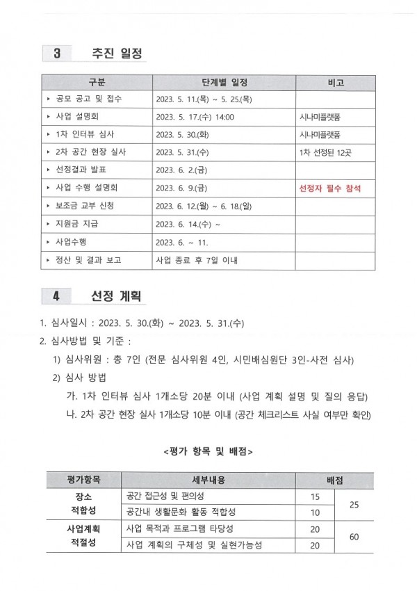 - 내용 : 2023년 강릉 오방, 움직이는 강릉 오방, 지정 오방 신청 및 사업 소개