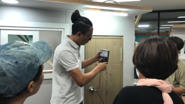 서희전기 김경율 대표의 진행으로 전등과, 배전판 설치하는 방법부터 노출형, 매립형 전등 설치, 콘센트 빼는 법, 스위치 설치하는 법으로 진행되었다.