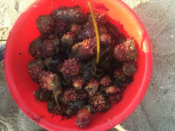 사진내용 : 이웃으로부터 순긋해변에 멍게와 미역이 밀려왔다는 소식을 듣고 가서 파도에 밀려온 멍게와 미역을 주워 멍게회, 멍게비빔밥을 해먹고 미역은 말려서 미역국을 해먹음. 지금까지 먹었던 미역 중 가장 부드러운 미역이었음.