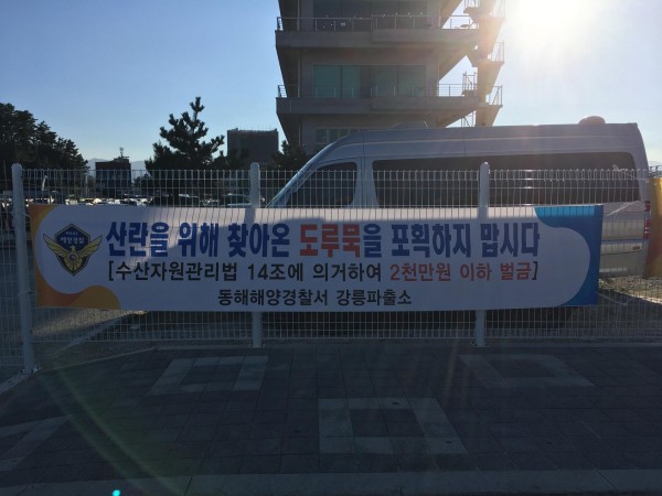사진내용 : 산란을 위해 찾아온 도루묵을 포획하지 말자는 현수막